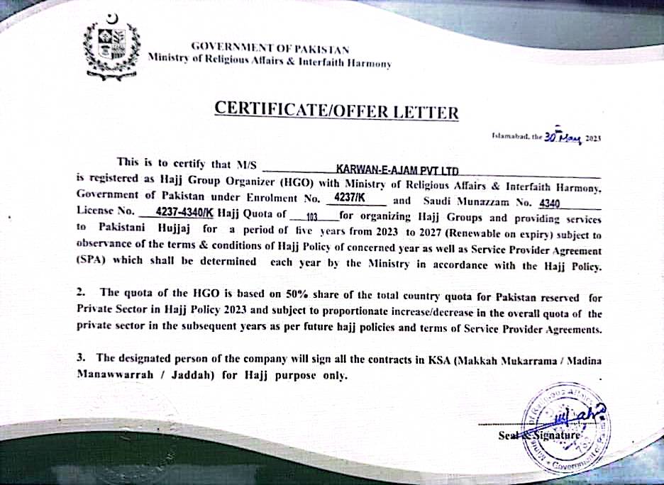 Karwan e Ajam has proudly been Pakistan’s foremost premium Hajj & Umrah Service Provider. Established in 2023 and incorporated in 2024, our heritage is built on a foundation of trust, reliability, and luxury. We are the first preference for discerning pilgrims who seek to perform their sacred rites with absolute comfort, ease, and spiritual serenity. Our vision is to be the globally premier provider, renowned for delivering an unparalleled pilgrimage experience where every logistical detail is flawlessly managed, allowing you to focus entirely on worship and reflection.